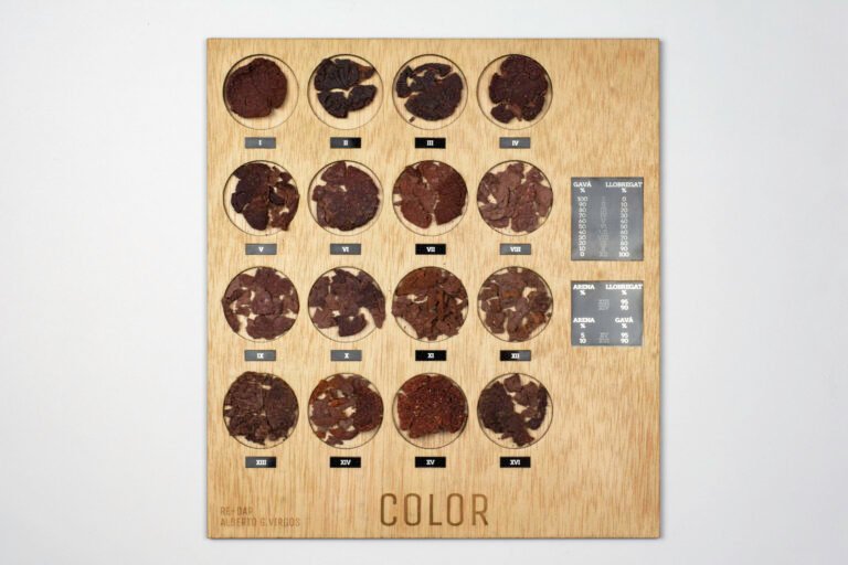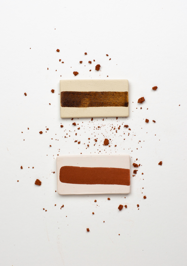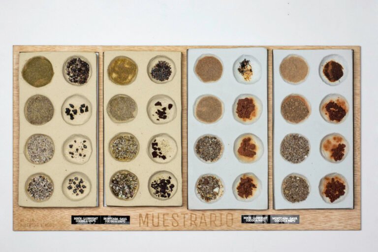 Estos lodos, habitualmente tratados como residuo sin valor, contienen minerales y metales que les otorgan propiedades cromáticas y plásticas únicas — propiedades que RE-DAR convierte en el núcleo del material.