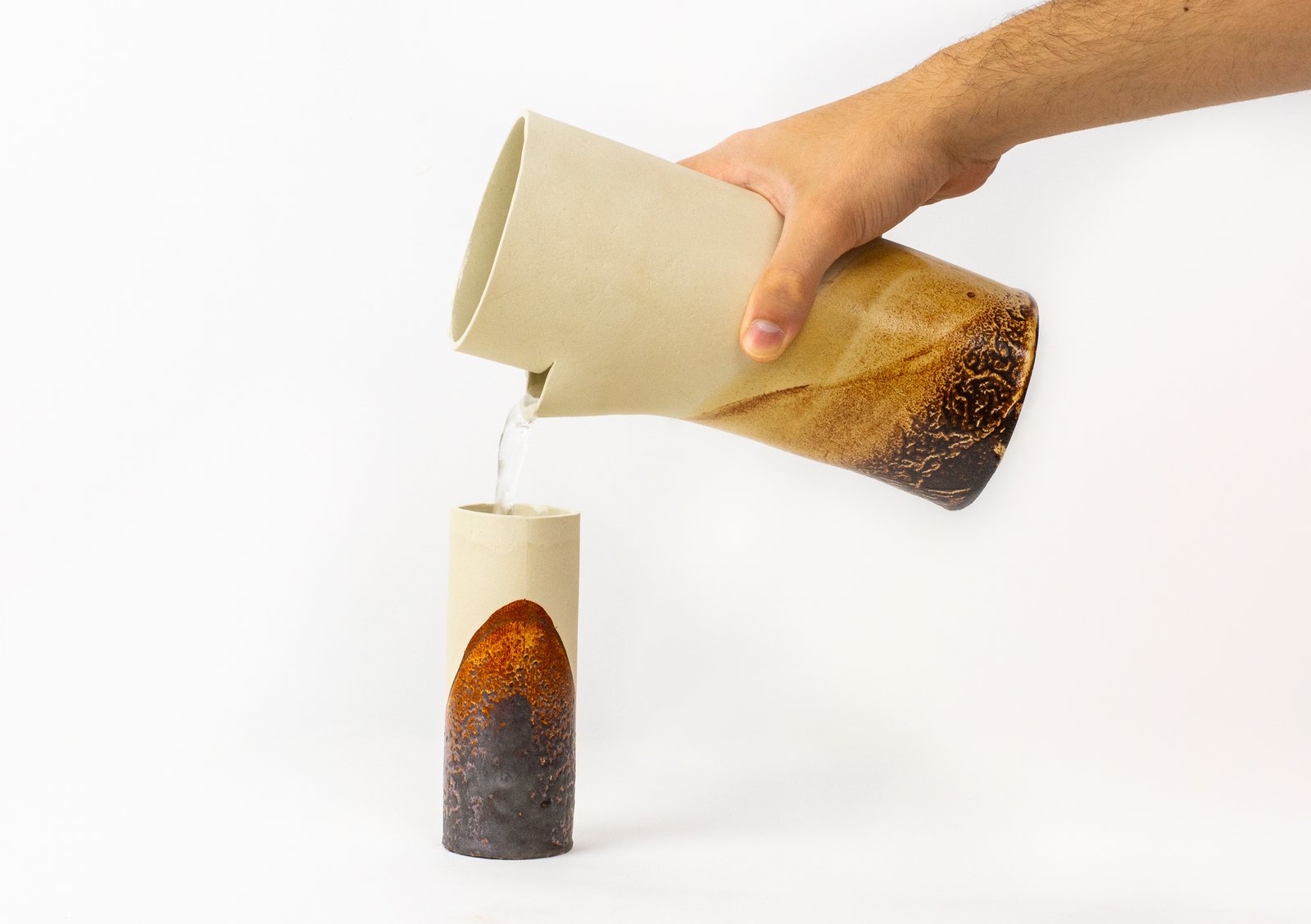 El resultado es una pintura cerámica sostenible cuya variación de color no es un defecto — es su firma. Cada lote refleja la composición química del agua de una ciudad concreta en un momento concreto, haciendo visible lo que normalmente se descarta e ignora.